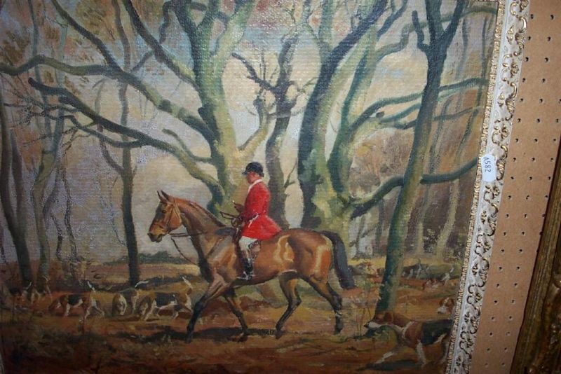 | a hunting scene with huntsman and hound in a wooded landscape | |