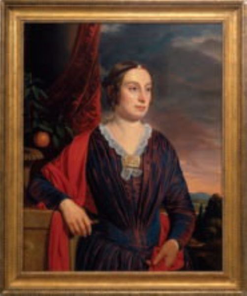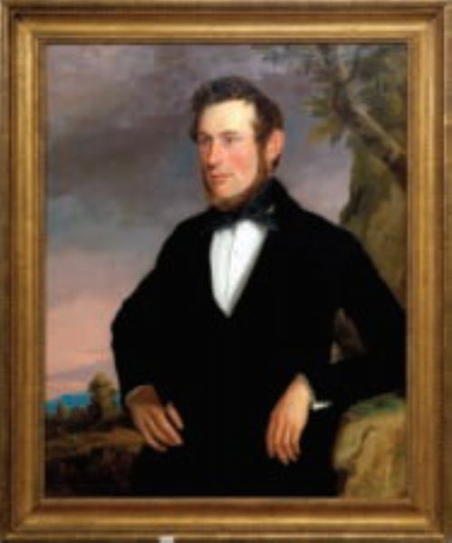 PAIR OF PORTRAITS OF A MAN IN A LANDSCAPE AND WOMAN BESIDE A STONE LEDGE