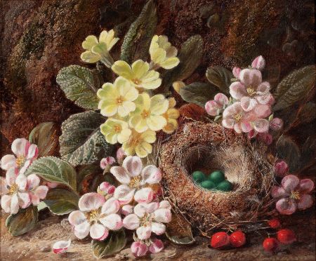 Still Life with Apple Blossom, Primroses, and Bird's Nest