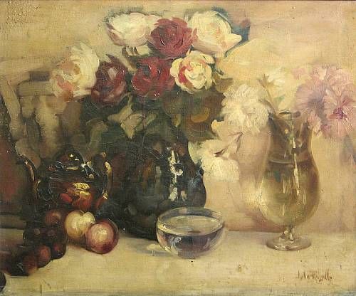 A still life with roses and fruit; Purple sunset; Moonlight sea