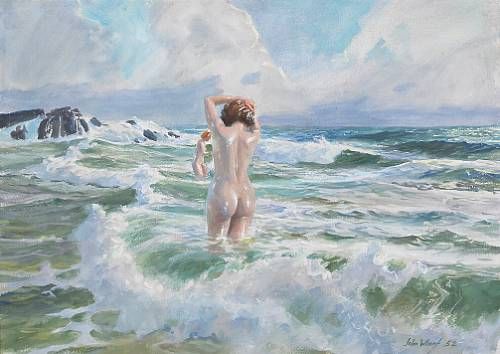 Nudes Wading in the Surf