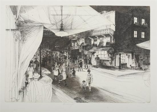 NIGHT IN CHINATOWN WITH LIGHTED WINDOWS