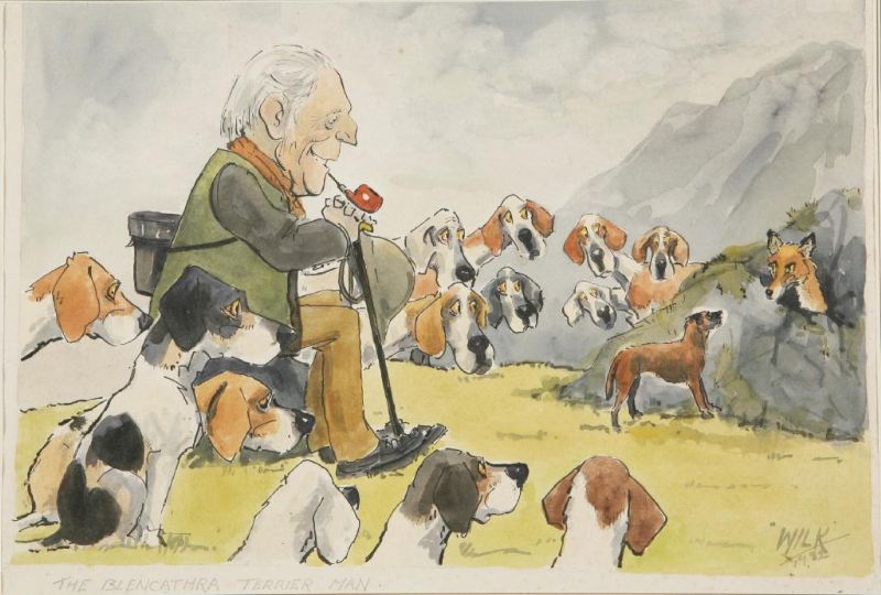 | THE BLENCATHRA TERRIER MAN, depicting Bob Wilson sitting smoking pipe, with hounds, terrier and fox amongst the fells | |