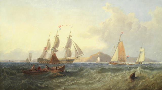 A '74' of the Royal Navy beating along the coast in a stiff breeze,