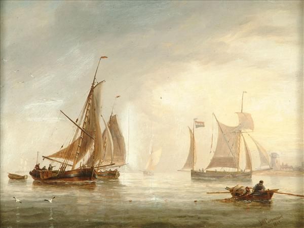 Sailing Barges And Fishing Boats Off The Dutch Coast