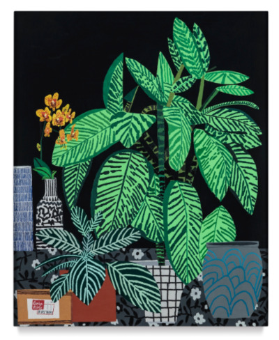 BLACK STILL LIFE WITH YELLOW ORCHID