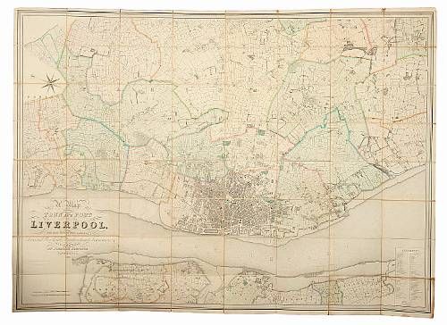 Engraving engraved town plan, hand coloured, dissected and linen backed