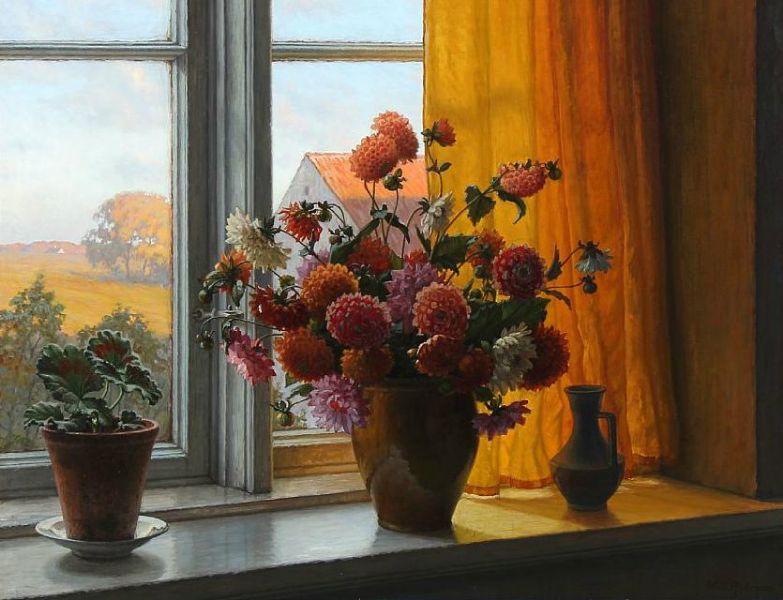Flowers in a window sill