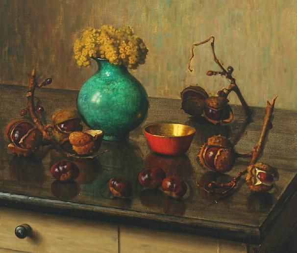 | Still life with chestnuts and a bouquet of flowers | |