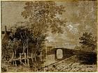 | Brush point of the brush and brown ink and wash, heightened with white, on blue paper | |