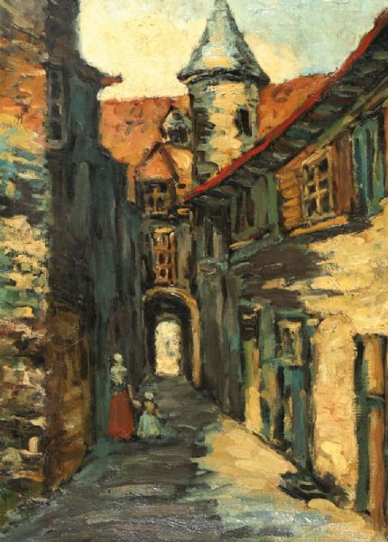 Alley with fisherwoman and her daughter
