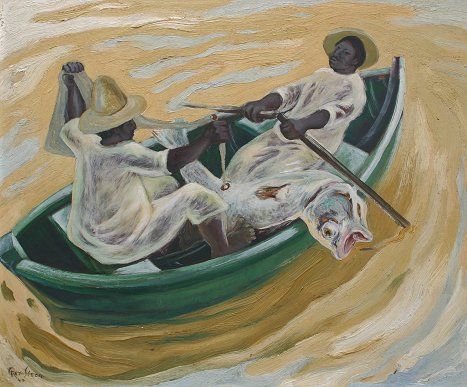 Fishermen in Boat with Giant Fish