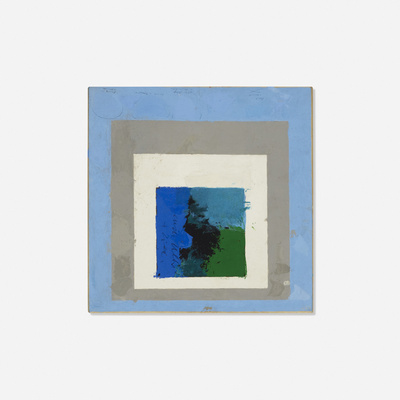 Signed and dated to edge 'A 50'. Signed titled and dated to reverse 'Study For "Homage To The Square" Albers 1950'. The painting is included in an appendix of lost, damaged, and destroyed works in the catalogue raisonné of the paintings of Josef Albe | |