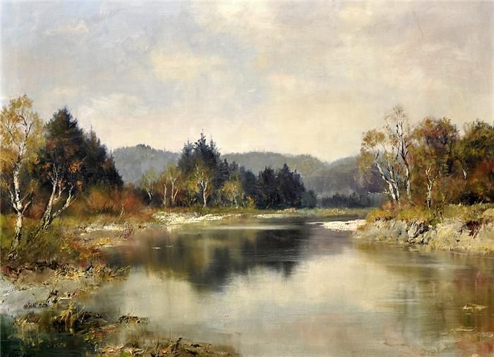 Birkenumstandener Flusslauf.