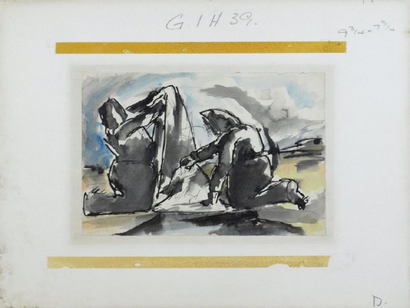 Ink and watercolour over pencil drawing