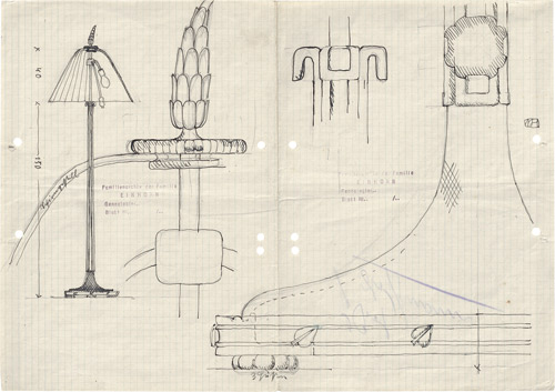 | Entwürfe für eine Stehlampe; Entwürfe für eine Anrichte. | |
