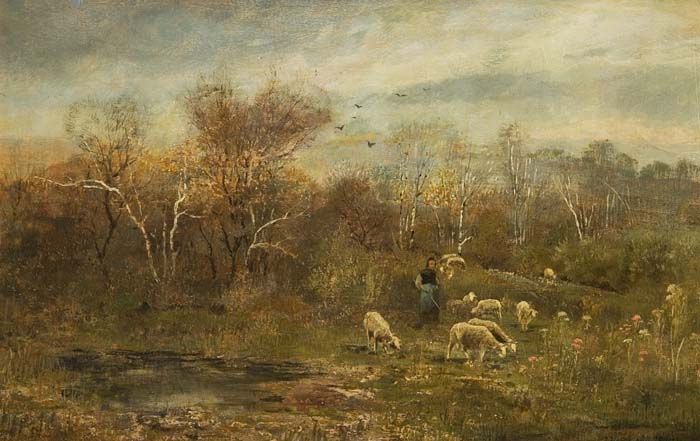 Stimmungsvolle Herbstlandschaft mit Schäferin