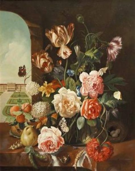 Blumen in Vase mit Ausblick auf Schloss Schönbrunn