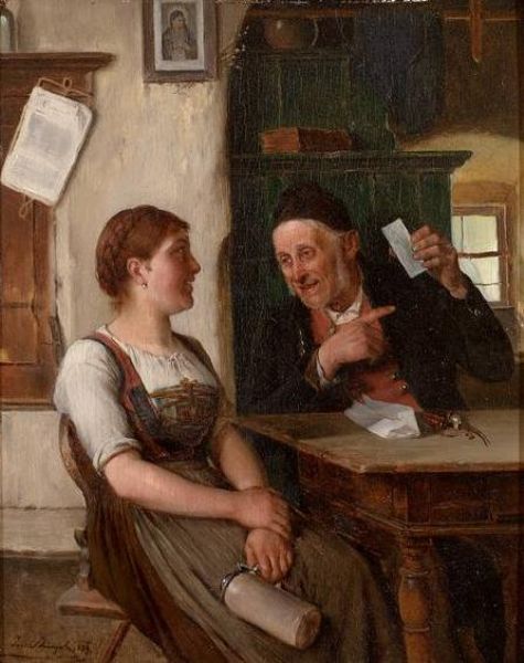 Heiratsvermittler zeigt einer jungen Frau das Bild