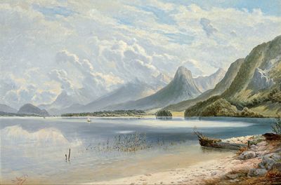 Blick auf den Wolfgang See gegen Zinkenbach und Sparber