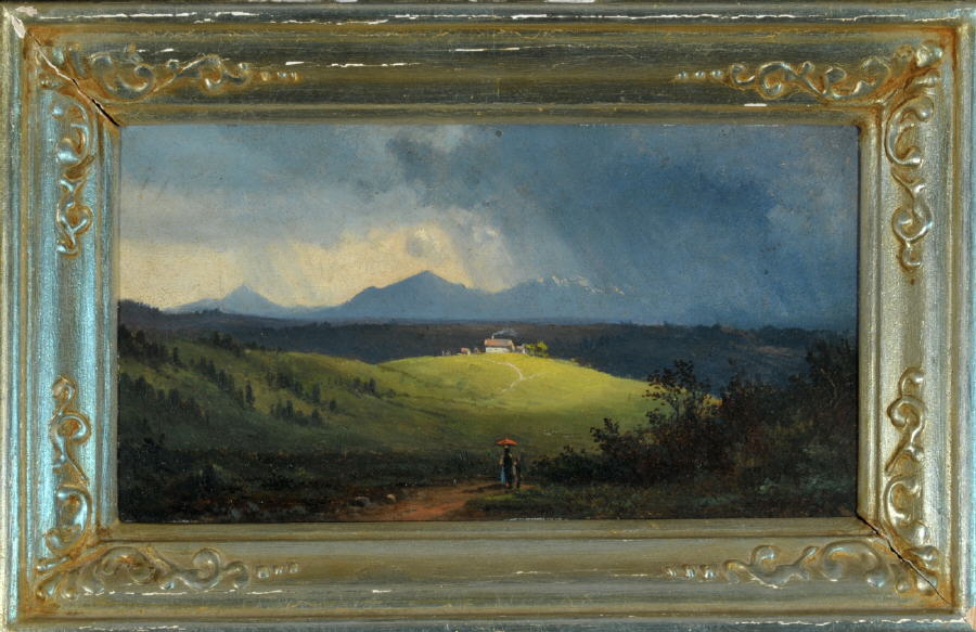 Berglandschaft mit Personen bei aufziehendem Gewitter