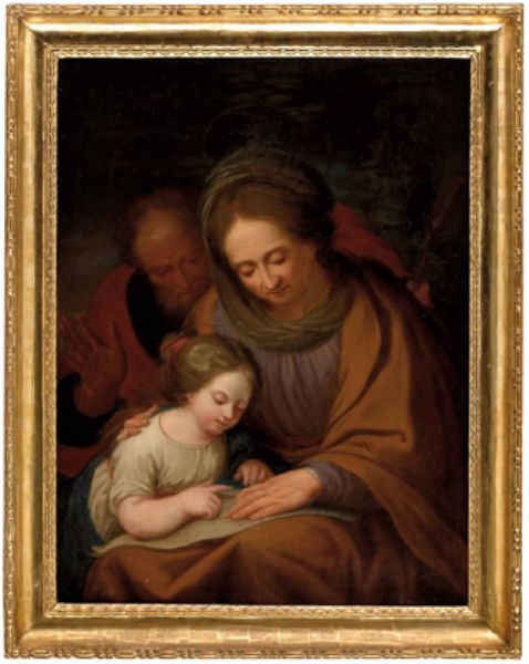 Die Hl. Mutter Anna lehrt Maria das Lesen, im Hintergrund der hl. Joachim