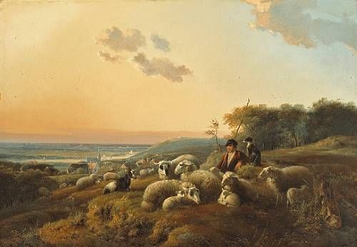 A shepherd with his flock in an extensive landscape