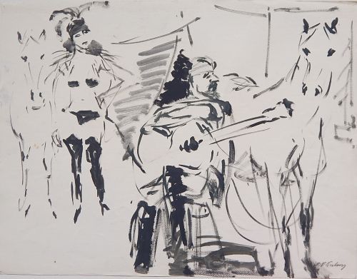 'Circus Performers and Horse