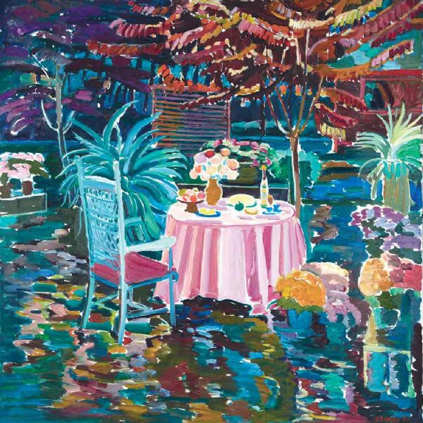 Pink Table and Purple Plum Trees