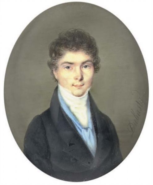 | A gentleman called Louis de Beaufonds, in black coat and waistcoat, white shirt and sky blue cravat | |