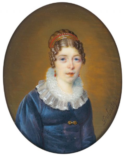 | A portrait of a lady with slightly parted lips and hair ornaments | |