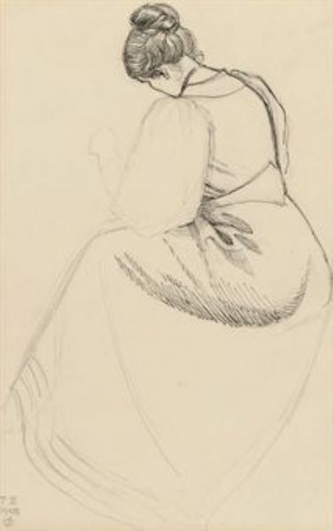 Study of a seated woman viewed from behind (illustrated)