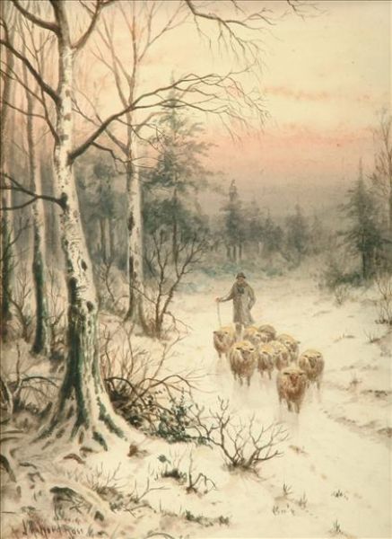 | Sheep and Shepherd in a snowy lane Horses and figure on a snowy road Coach and horses outside a tavern in the snow | |