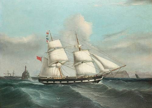 The Brig 'Martha' passing the Fastnet Rock, homeward bound for Liverpool