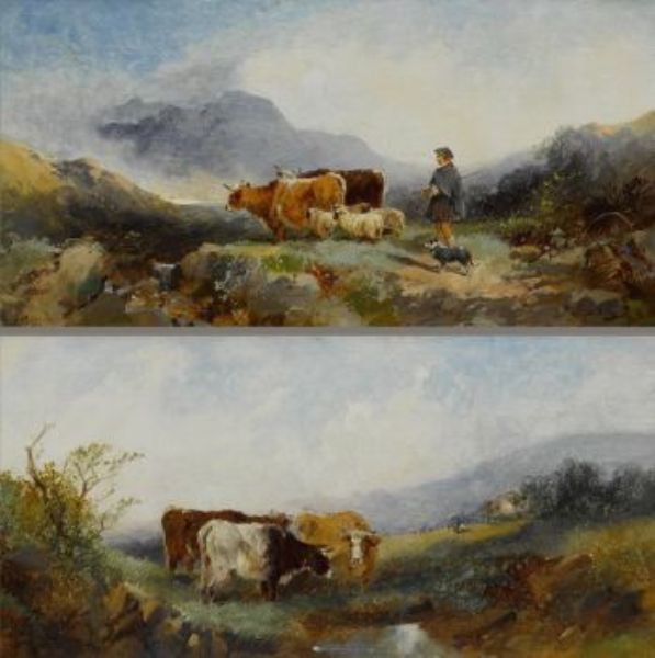 | Hirte mit Vieh im schottischen Hochland - Rinder am Wasser | |