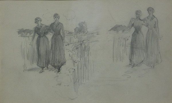 Staithes Fishergirls & Shipping off Whitby Abbey
