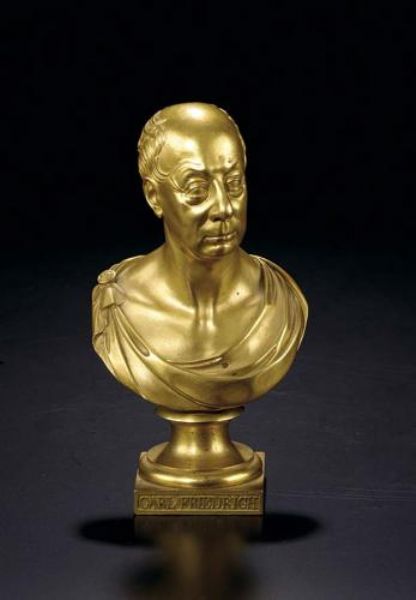 | A SMALL GILT.BRONZE BUST OF ARCHDUKE KARL FRIEDRICH VON BADEN | |