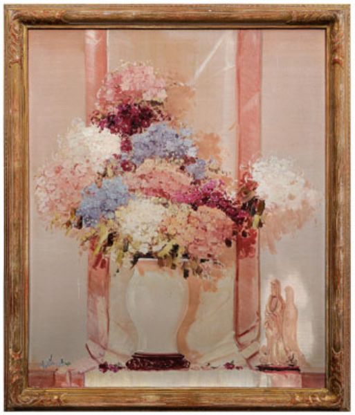 Still life with phlox in a white vase and Asian figurine