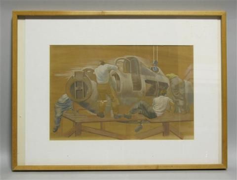 | PLANE PRODUCTION - RIVETING THE FUSILAGE OF A P-39 AIRCOBRA | |