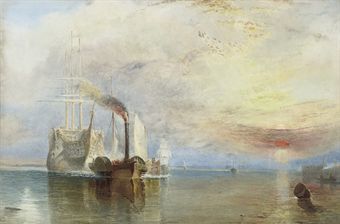 | The Fighting Temeraire being tugged to her last berth to be broken up | |