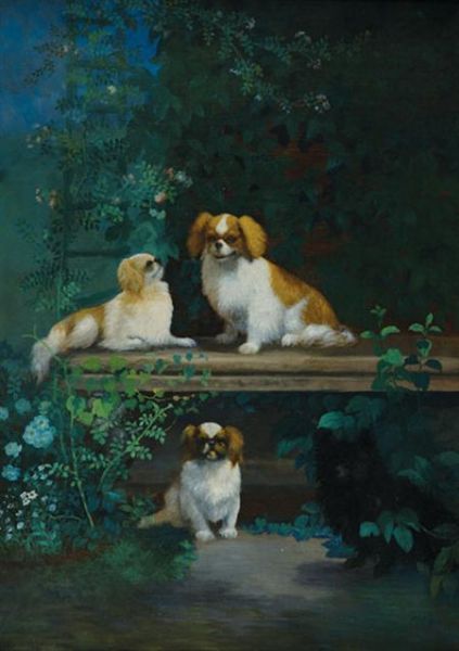 | Three King Charles Spaniels and a Pomeranian in a Garden, 1922 | |