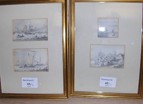 Four miniature landscape and seascape sketches