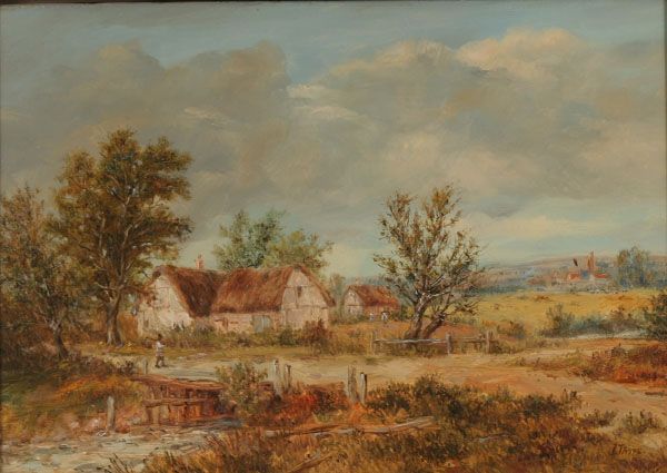 rural landscape with rustic cottage