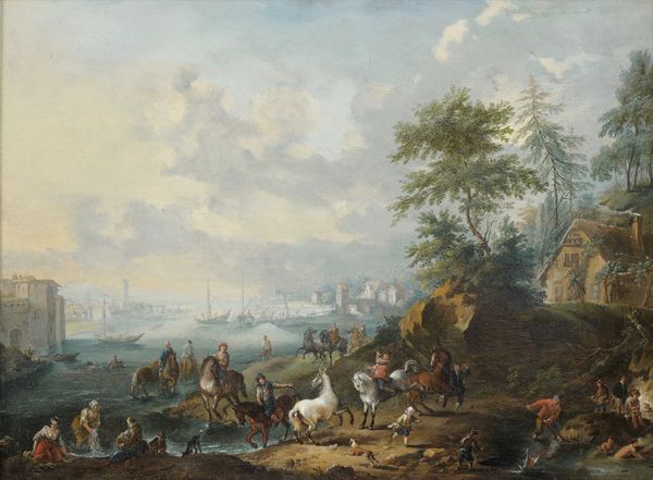 PAYSAGE DE RIVIÈRE AVEC UNE SCÈNE DE DRESSAGE DE CHEVAUX