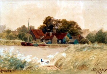 landscape watercolours depicting river scenes