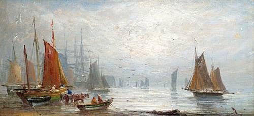 'Busy shipping scene' and 'Dismasted'