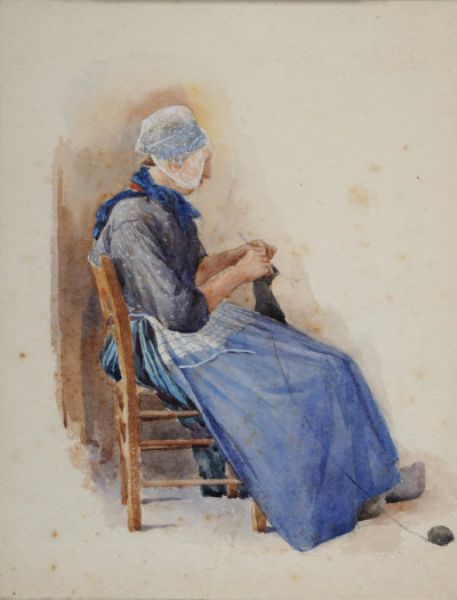 Dutch lady knitting.