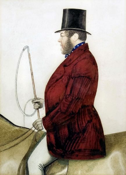 Mr G. Henley Greaves in riding attire on horseback