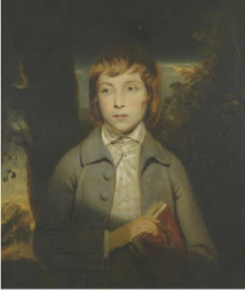 | Portrait of Henry William Bunbury (1750-1811), bust-length, in a grey coat holding a book, a landscape beyond | |