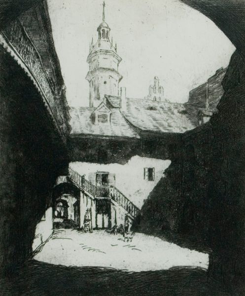 PODWÓRKO NA KAZIMIERZU W KRAKOWIE Z WIEŻĄ KOŚCIOŁA BOŻEGO CIAŁA